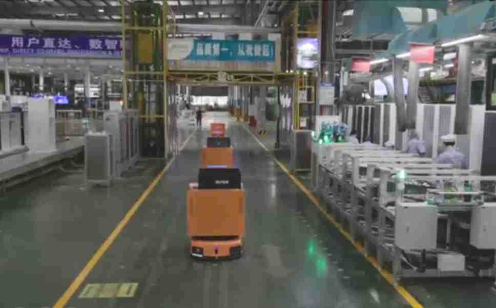 为车载冰箱物流配送打造的智能解决方案,,,包含产中物流通过潜伏举升AMR搬运至线边,,,产后成品物流智能仓储,,,流程包含产中物流智能齐套入库,,线边安灯叫料AMR智能配送至线边,,,成品入库、、、、出库,,通过无人堆高车机器人,,,,智能仓储管理替代人工作业管理,,,,实现更高存储、、、更高效率、、、、更具柔性化的解决方案。。。